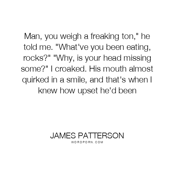 Man, you weigh a freaking ton," he told me. "What've you been eating, rocks?" "Why, is your head missing some?" I croaked. His mouth almost quirked in a smile, and that's when I knew how upset he'd been