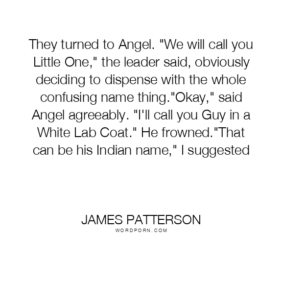They turned to Angel. "We will call you Little One," the leader said, obviously deciding to dispense with the whole confusing name thing."Okay," said Angel agreeably. "I'll call you Guy in a White Lab Coat." He frowned."That can be his Indian name," I suggested