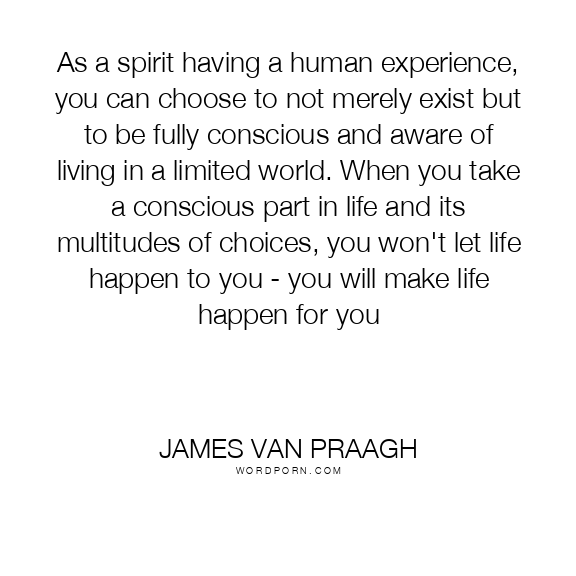 As a spirit having a human experience, you can choose to not merely exist but to be fully conscious and aware of living in a limited world. When you take a conscious part in life and its multitudes of choices, you won't let life happen to you - you will make life happen for you