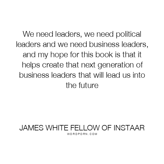 We need leaders, we need political leaders and we need business leaders, and my hope for this book is that it helps create that next generation of business leaders that will lead us into the future