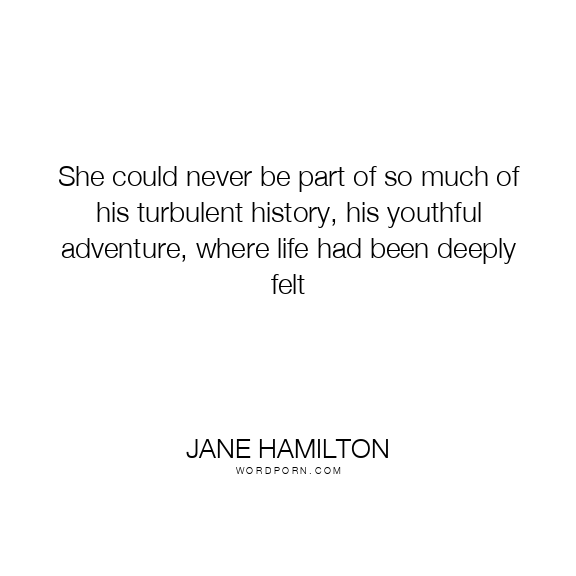She could never be part of so much of his turbulent history, his youthful adventure, where life had been deeply felt