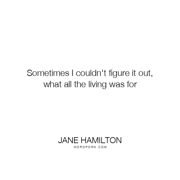 Sometimes I couldn't figure it out, what all the living was for