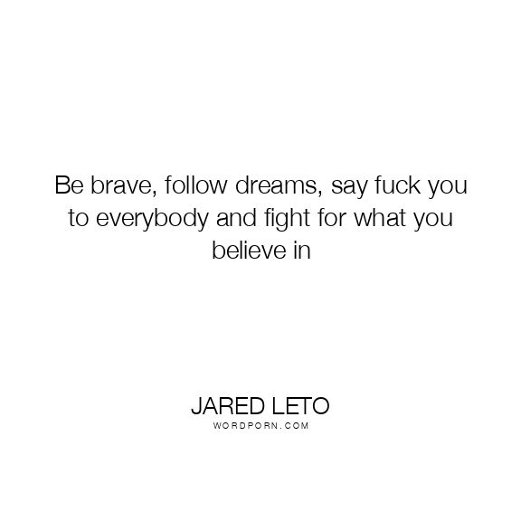 Be brave, follow dreams, say fuck you to everybody and fight for what you believe in