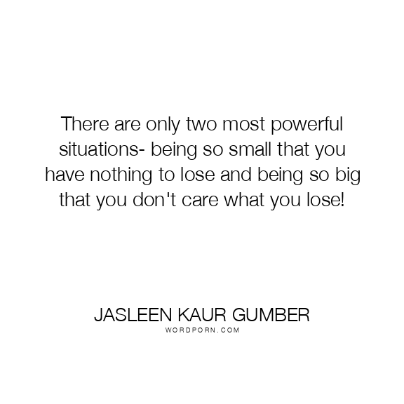 There are only two most powerful situations- being so small that you have nothing to lose and being so big that you don't care what you lose!