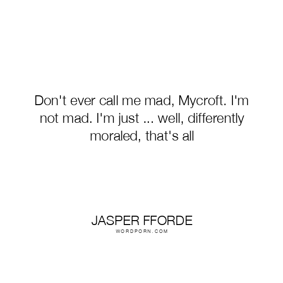 Don't ever call me mad, Mycroft. I'm not mad. I'm just ... well, differently moraled, that's all