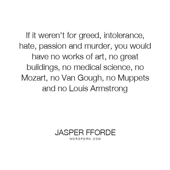 If it weren't for greed, intolerance, hate, passion and murder, you would have no works of art, no great buildings, no medical science, no Mozart, no Van Gough, no Muppets and no Louis Armstrong