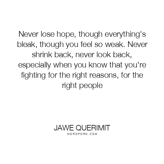 Never lose hope, though everything's bleak, though you feel so weak. Never shrink back, never look back, especially when you know that you're fighting for the right reasons, for the right people