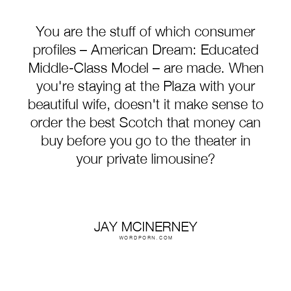 You are the stuff of which consumer profiles – American Dream: Educated Middle-Class Model – are made. When you're staying at the Plaza with your beautiful wife, doesn't it make sense to order the best Scotch that money can buy before you go to the theater in your private limousine?