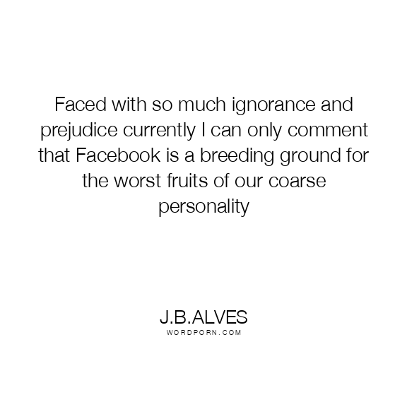 Faced with so much ignorance and prejudice currently I can only comment that Facebook is a breeding ground for the worst fruits of our coarse personality