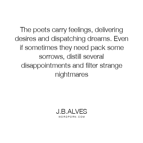 The poets carry feelings, delivering desires and dispatching dreams. Even if sometimes they need pack some sorrows, distill several disappointments and filter strange nightmares