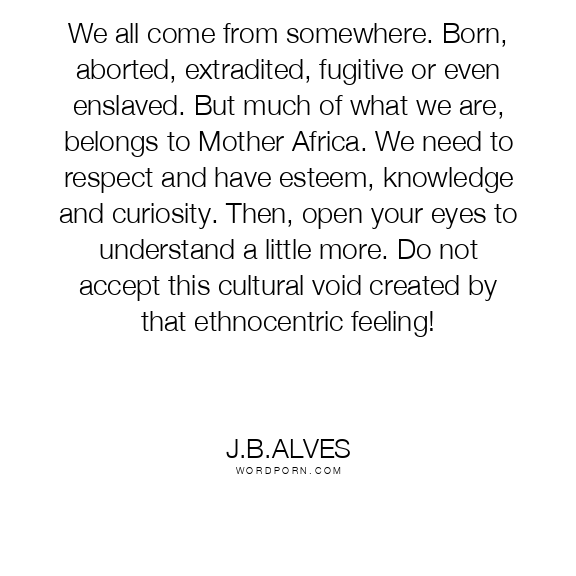 We all come from somewhere. Born, aborted, extradited, fugitive or even enslaved. But much of what we are, belongs to Mother Africa. We need to respect and have esteem, knowledge and curiosity. Then, open your eyes to understand a little more. Do not accept this cultural void created by that ethnocentric feeling!