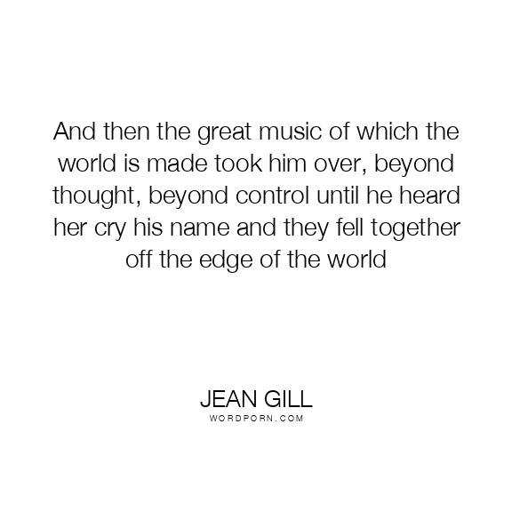 And then the great music of which the world is made took him over, beyond thought, beyond control until he heard her cry his name and they fell together off the edge of the world