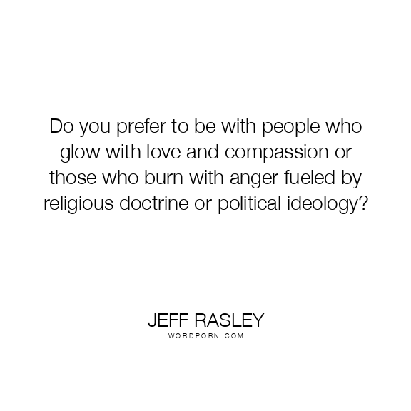 Do you prefer to be with people who glow with love and compassion or those who burn with anger fueled by religious doctrine or political ideology?