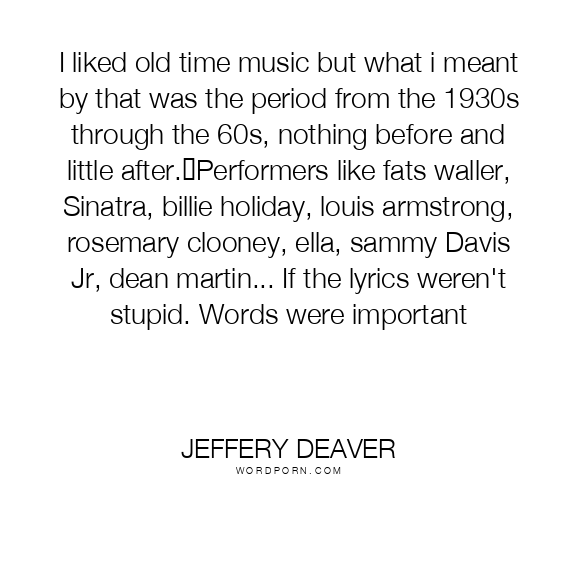 I liked old time music but what i meant by that was the period from the 1930s through the 60s, nothing before and little after. Performers like fats waller, Sinatra, billie holiday, louis armstrong, rosemary clooney, ella, sammy Davis Jr, dean martin... If the lyrics weren't stupid. Words were important