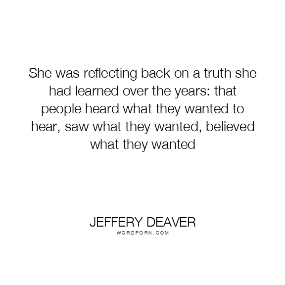 She was reflecting back on a truth she had learned over the years: that people heard what they wanted to hear, saw what they wanted, believed what they wanted