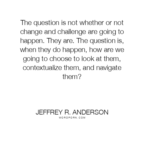 The question is not whether or not change and challenge are going to happen. They are. The question is, when they do happen, how are we going to choose to look at them, contextualize them, and navigate them?