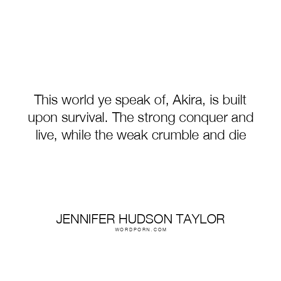 This world ye speak of, Akira, is built upon survival. The strong conquer and live, while the weak crumble and die