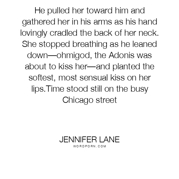 He pulled her toward him and gathered her in his arms as his hand lovingly cradled the back of her neck. She stopped breathing as he leaned down—ohmigod, the Adonis was about to kiss her—and planted the softest, most sensual kiss on her lips.Time stood still on the busy Chicago street