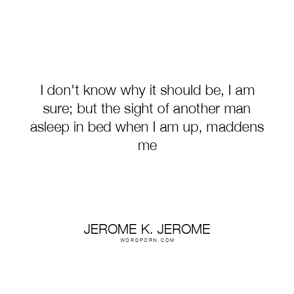 Jerome K. Jerome quote. I don't know why it should be, I am sure; but the sight of another man asleep in bed when I am up, maddens me