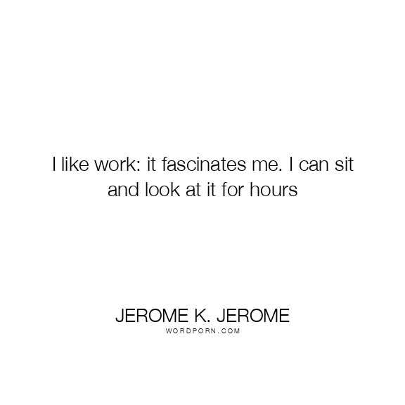 Jerome K. Jerome quote. I like work: it fascinates me. I can sit and look at it for hours