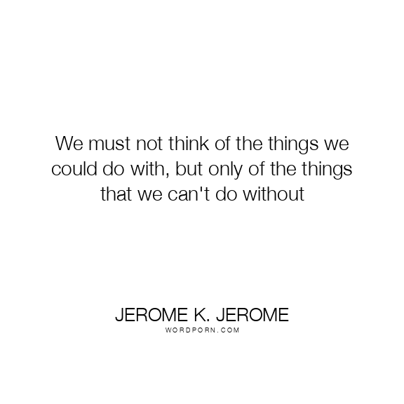 Jerome K. Jerome quote. We must not think of the things we could do with, but only of the things that we can't do without
