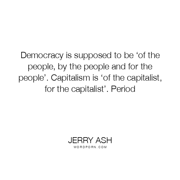 Democracy is supposed to be ‘of the people, by the people and for the people’. Capitalism is ‘of the capitalist, for the capitalist’. Period