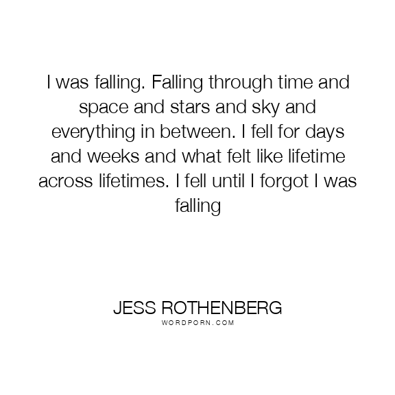 I was falling. Falling through time and space and stars and sky and everything in between. I fell for days and weeks and what felt like lifetime across lifetimes. I fell until I forgot I was falling