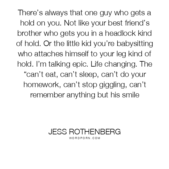 There’s always that one guy who gets a hold on you. Not like your best friend’s brother who gets you in a headlock kind of hold. Or the little kid you’re babysitting who attaches himself to your leg kind of hold. I’m talking epic. Life changing. The “can’t eat, can’t sleep, can’t do your homework, can’t stop giggling, can’t remember anything but his smile