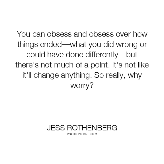 You can obsess and obsess over how things ended—what you did wrong or could have done differently—but there's not much of a point. It's not like it'll change anything. So really, why worry?