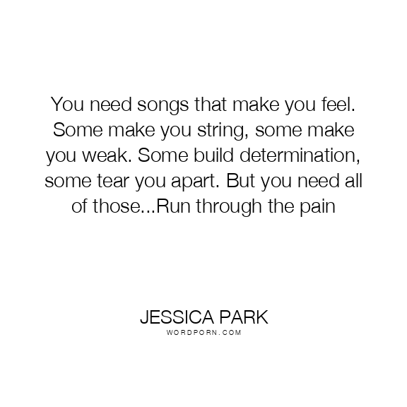 You need songs that make you feel. Some make you string, some make you weak. Some build determination, some tear you apart. But you need all of those...Run through the pain