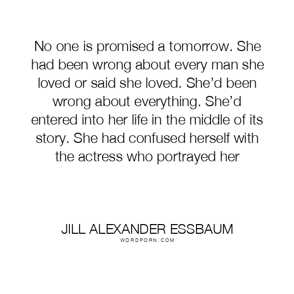 No one is promised a tomorrow. She had been wrong about every man she loved or said she loved. She’d been wrong about everything. She’d entered into her life in the middle of its story. She had confused herself with the actress who portrayed her