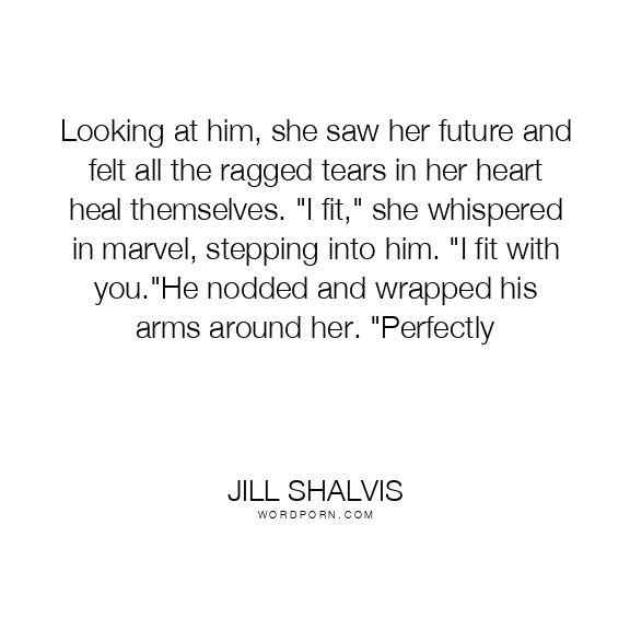 Looking at him, she saw her future and felt all the ragged tears in her heart heal themselves. "I fit," she whispered in marvel, stepping into him. "I fit with you."He nodded and wrapped his arms around her. "Perfectly