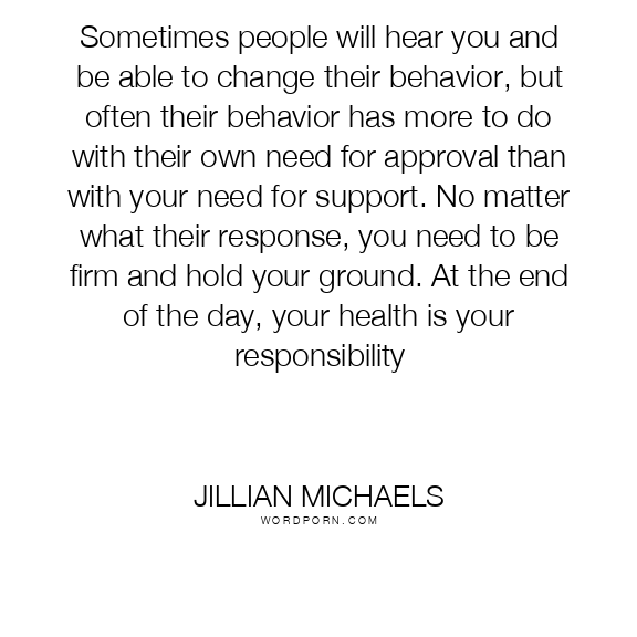 Sometimes people will hear you and be able to change their behavior, but often their behavior has more to do with their own need for approval than with your need for support. No matter what their response, you need to be firm and hold your ground. At the end of the day, your health is your responsibility