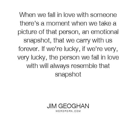 When we fall in love with someone there's a moment when we take a picture of that person, an emotional snapshot, that we carry with us forever. If we're lucky, if we're very, very lucky, the person we fall in love with will always resemble that snapshot