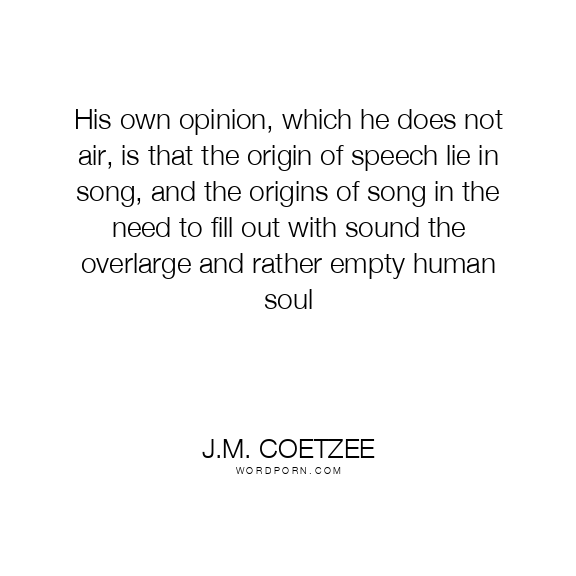 His own opinion, which he does not air, is that the origin of speech lie in song, and the origins of song in the need to fill out with sound the overlarge and rather empty human soul