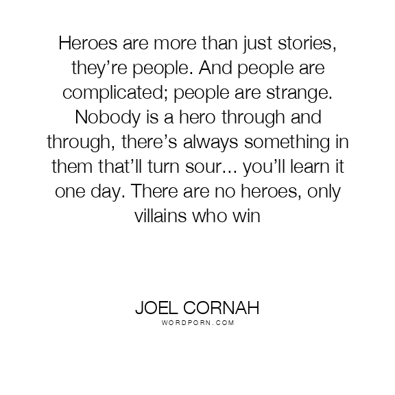Heroes are more than just stories, they’re people. And people are complicated; people are strange. Nobody is a hero through and through, there’s always something in them that’ll turn sour... you’ll learn it one day. There are no heroes, only villains who win