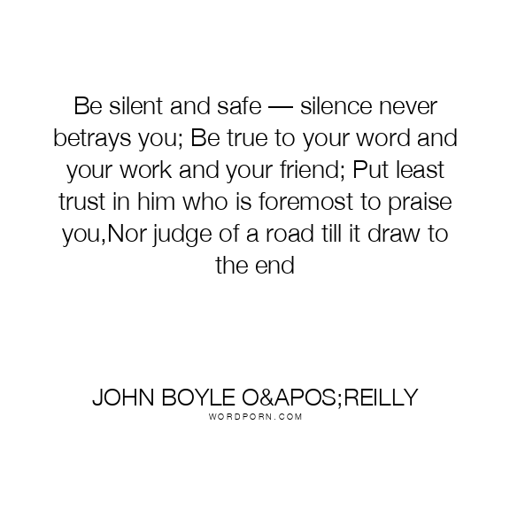 Be silent and safe — silence never betrays you; Be true to your word and your work and your friend; Put least trust in him who is foremost to praise you,Nor judge of a road till it draw to the end