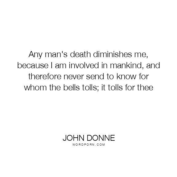 Any man's death diminishes me, because I am involved in mankind, and therefore never send to know for whom the bells tolls; it tolls for thee