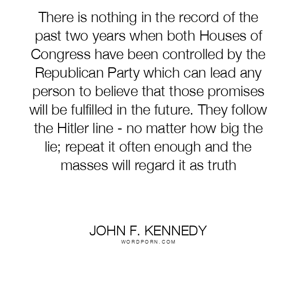 There is nothing in the record of the past two years when both Houses of Congress have been controlled by the Republican Party which can lead any person to believe that those promises will be fulfilled in the future. They follow the Hitler line - no matter how big the lie; repeat it often enough and the masses will regard it as truth