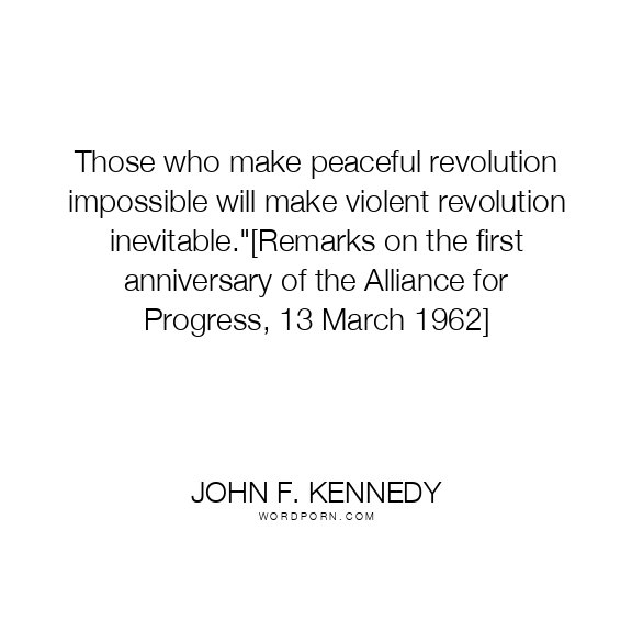 Those who make peaceful revolution impossible will make violent revolution inevitable."[Remarks on the first anniversary of the Alliance for Progress, 13 March 1962]