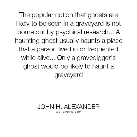 The popular notion that ghosts are likely to be seen in a graveyard is not borne out by psychical research... A haunting ghost usually haunts a place that a person lived in or frequented while alive... Only a gravedigger's ghost would be likely to haunt a graveyard