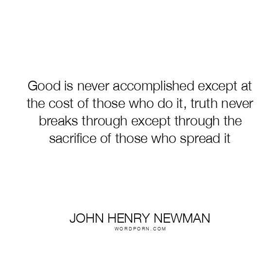 Good is never accomplished except at the cost of those who do it, truth never breaks through except through the sacrifice of those who spread it