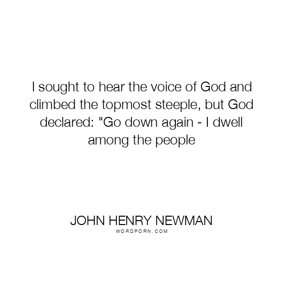 I sought to hear the voice of God and climbed the topmost steeple, but God declared: "Go down again - I dwell among the people
