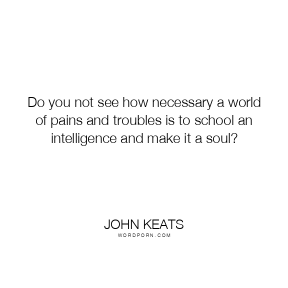 Do you not see how necessary a world of pains and troubles is to school an intelligence and make it a soul?