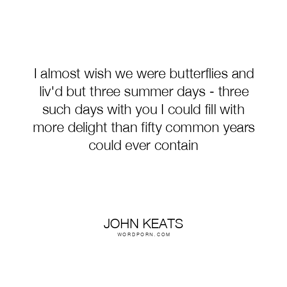 I almost wish we were butterflies and liv'd but three summer days - three such days with you I could fill with more delight than fifty common years could ever contain