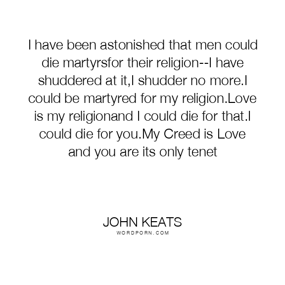 I have been astonished that men could die martyrsfor their religion--I have shuddered at it,I shudder no more.I could be martyred for my religion.Love is my religionand I could die for that.I could die for you.My Creed is Love and you are its only tenet