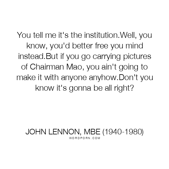 You tell me it's the institution.Well, you know, you'd better free you mind instead.But if you go carrying pictures of Chairman Mao, you ain't going to make it with anyone anyhow.Don't you know it's gonna be all right?