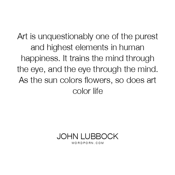 Art is unquestionably one of the purest and highest elements in human happiness. It trains the mind through the eye, and the eye through the mind. As the sun colors flowers, so does art color life