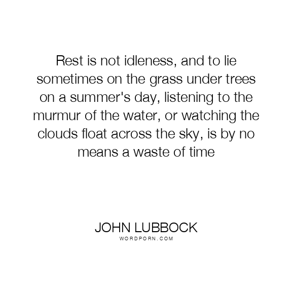 Rest is not idleness, and to lie sometimes on the grass under trees on a summer's day, listening to the murmur of the water, or watching the clouds float across the sky, is by no means a waste of time
