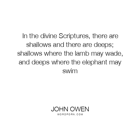 In the divine Scriptures, there are shallows and there are deeps; shallows where the lamb may wade, and deeps where the elephant may swim